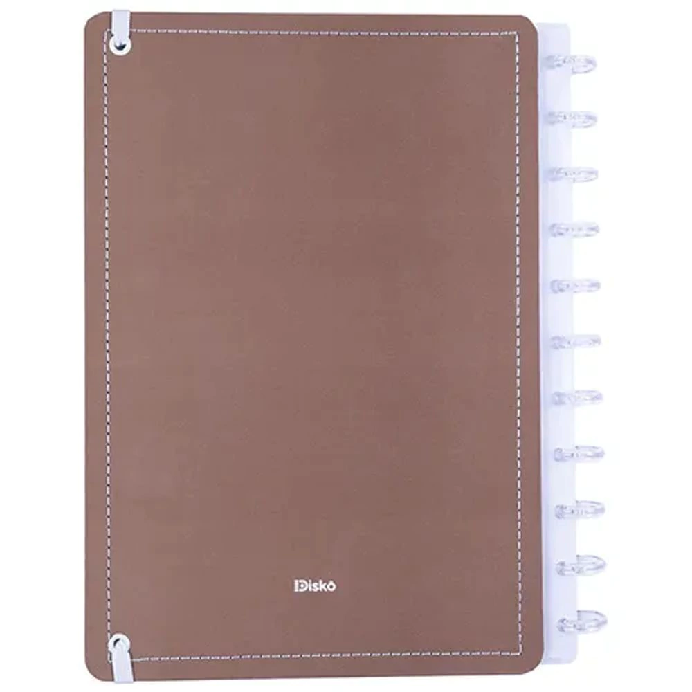O Caderno Disko Mocha Grande oferece organização e flexibilidade com seu sistema de encadernação por discos, ideal para suas anotações e projetos.