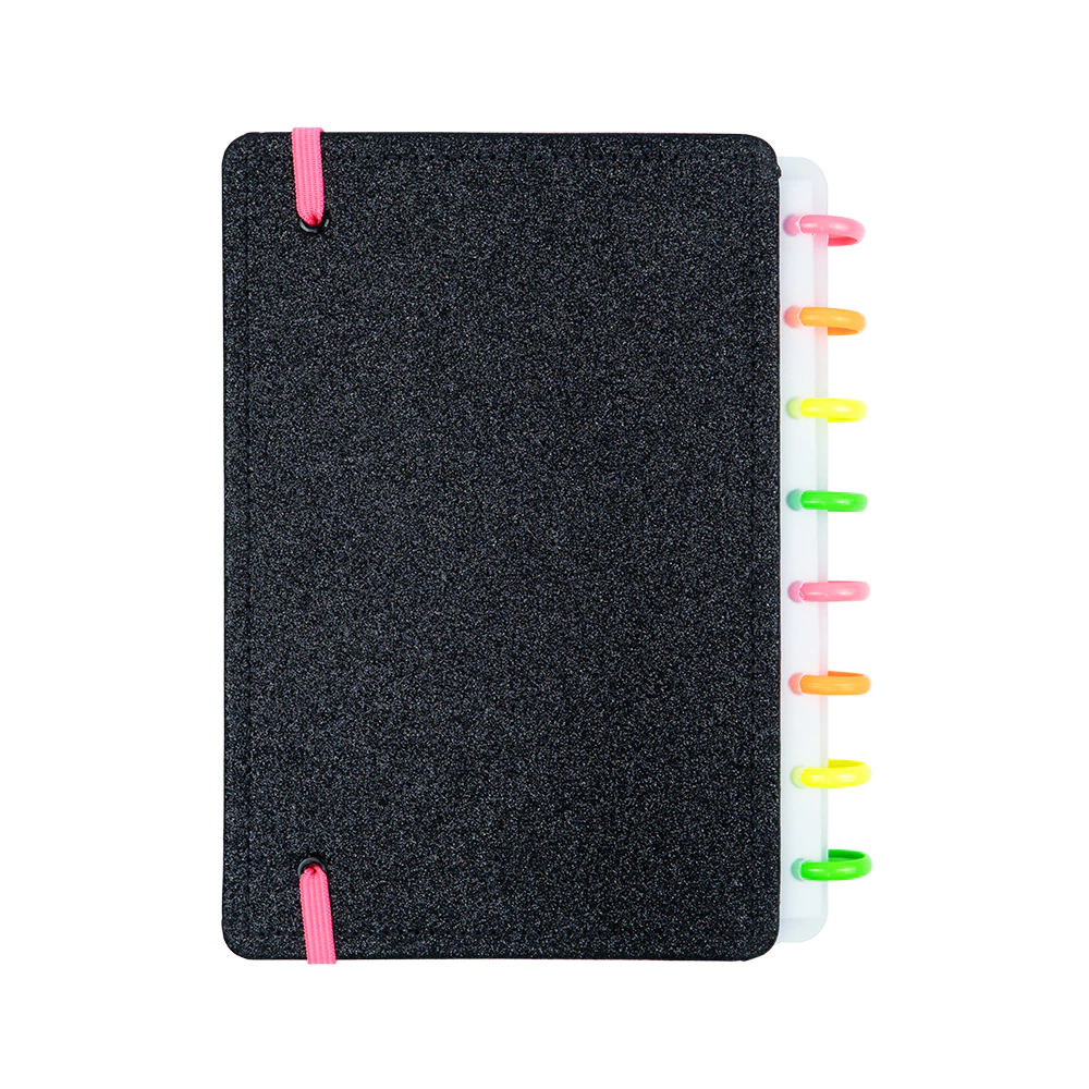 O novo Caderno Glitter Neon Black possui muito brilho na capa para você brilhar ainda mais nos estudos e anotações do dia a dia.