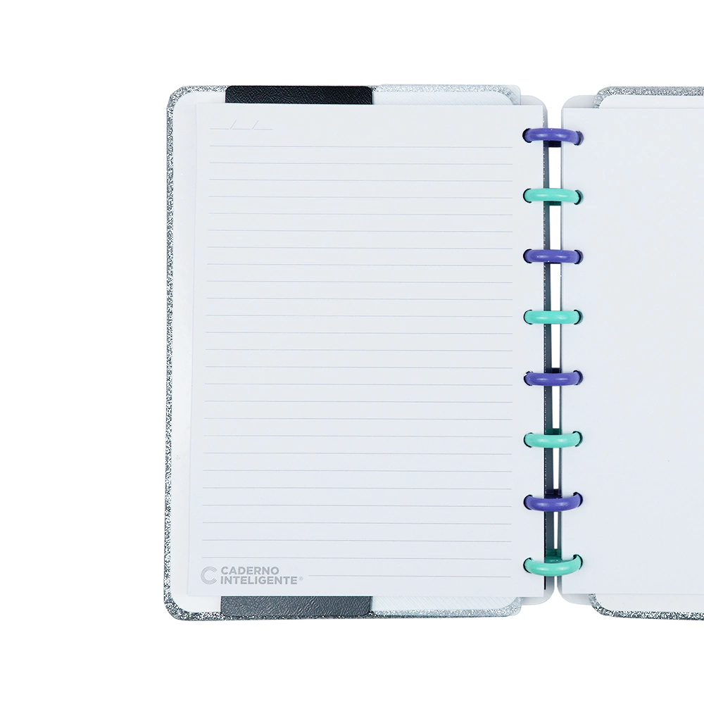 O Caderno Inteligente Original que você retira as folhas e coloca quando quiser. Você pode personalizar como desejar a capa, discos, elásticos e acessórios.