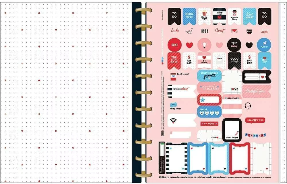 - Capa e Contracapa: duras, costuradas, com acabamento plástico para encaixe dos discos
