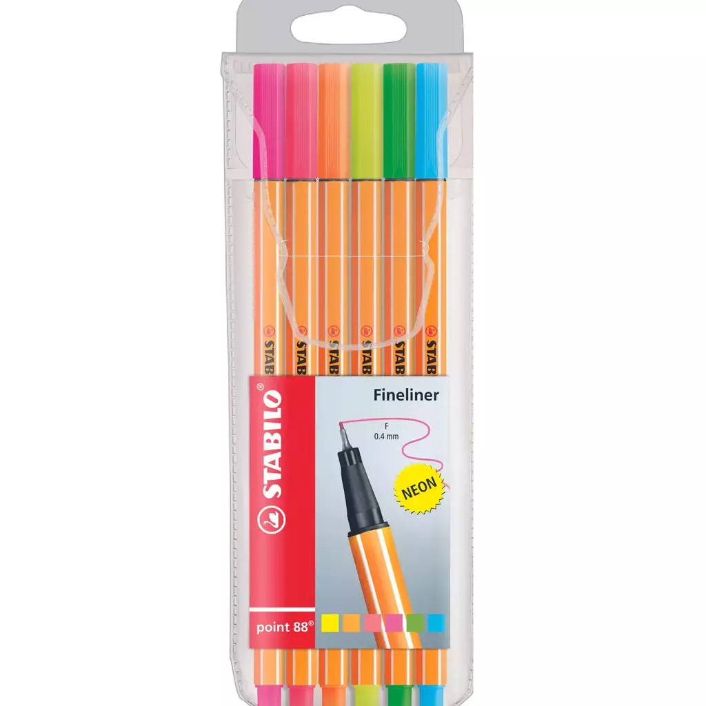 A STABILO point 88 é o companheiro perfeito para crianças em idade escolar, estudantes e profissionais. Lançada pela primeira vez em 1977, este produto é apreciado em todo o mundo por sua qualidade e usabilidade. Atualmente é a caneta fineliner nº 1 no Brasil. A famosa forma hexagonal do corpo da STABILO point 88 torna-o muito confortável de segurar.