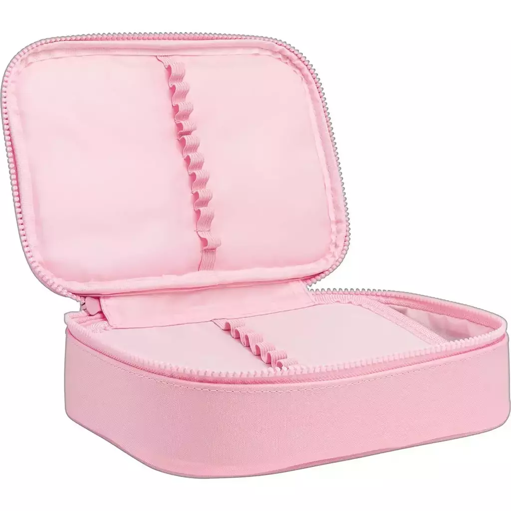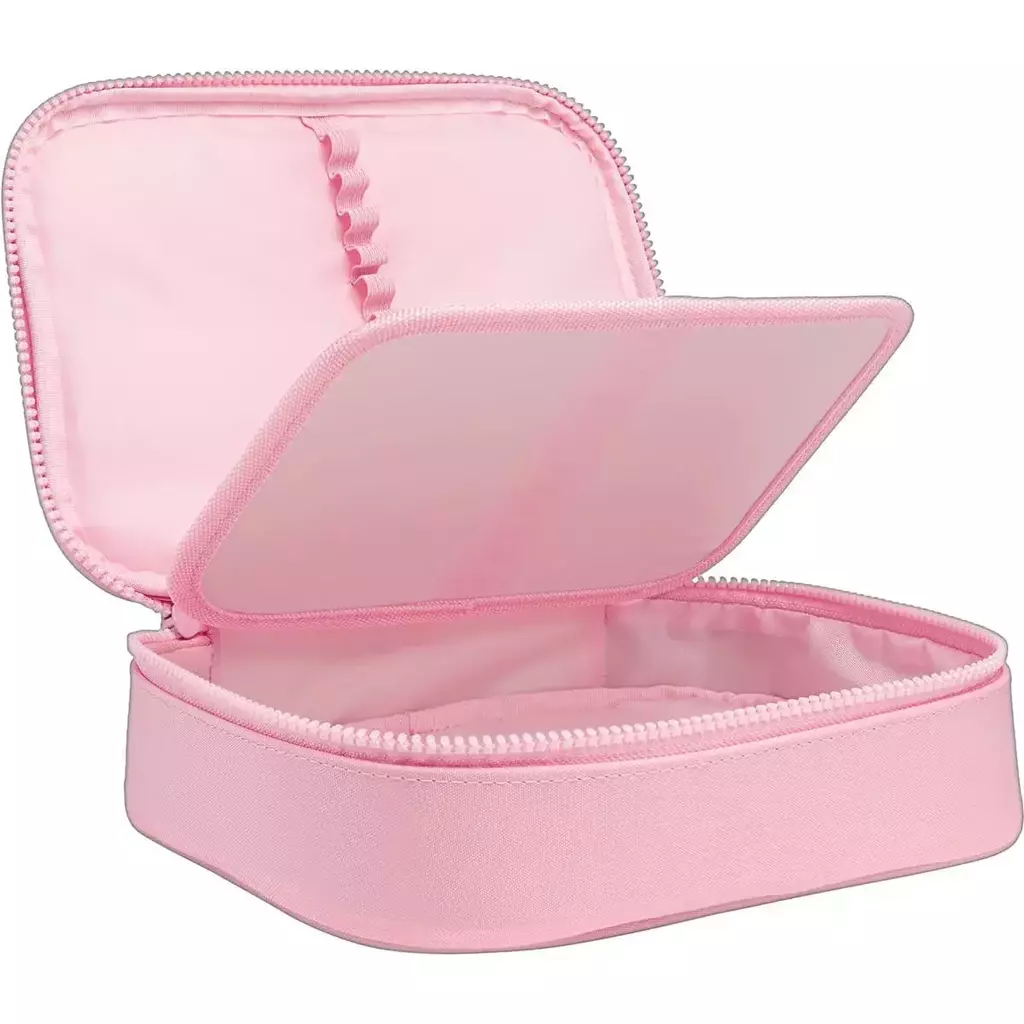 O Estojo Box Happy Rosa é prático, espaçoso e ideal para quem tem muitos lápis, canetas, outros materiais e acessórios. Além de facilitar seu dia a dia na escola, o estojo possui material resistente, é estruturado, espaçoso, conta com divisória central com elásticos que auxiliam na organização e fechamento em zíper.