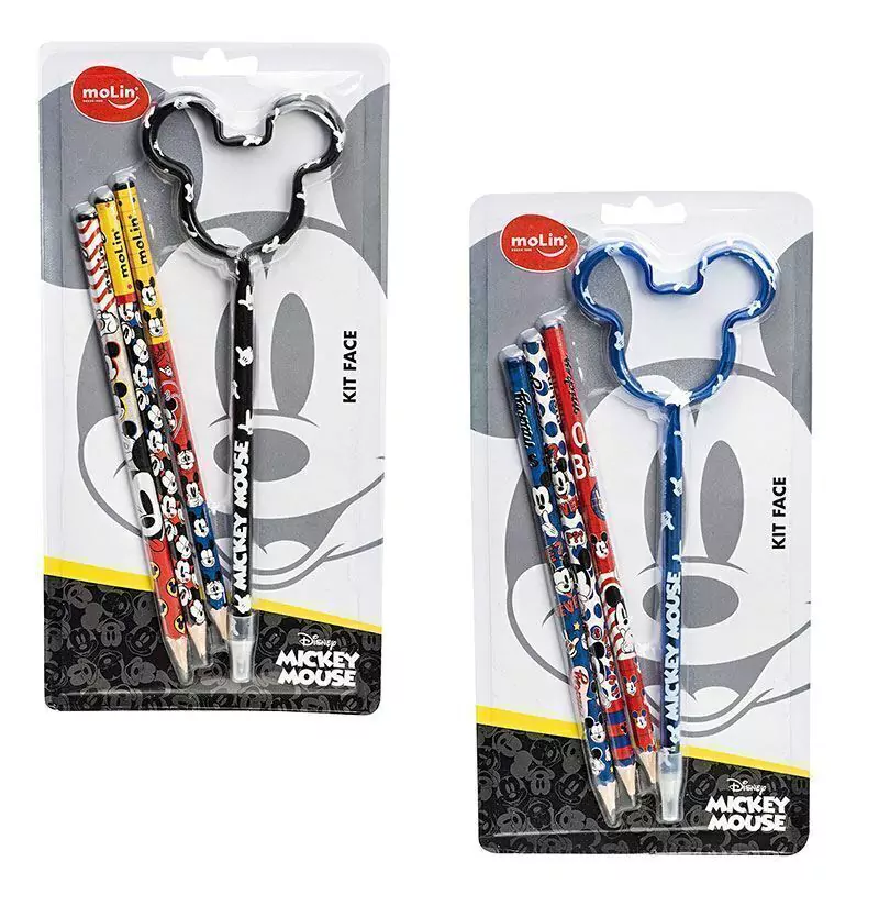 - 01 caneta esferográfica com tinta na cor azul e com o topo personalizado no formato da cabeça do Mickey; e
