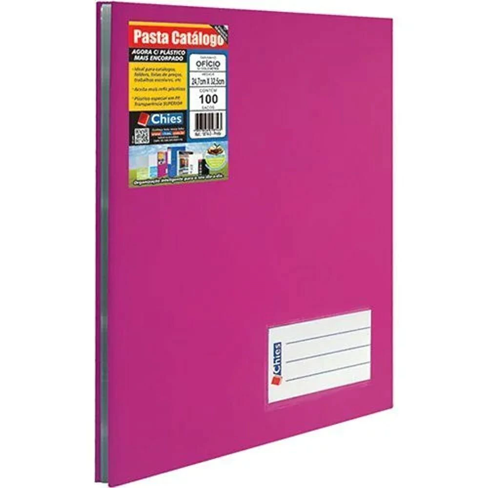 A Pasta Catálogo Chies Ofício com 100 Envelopes é ideal para quem busca manter seus documentos organizados de forma eficiente. Com capacidade para 100 envelopes plásticos transparentes, este produto proporciona a segurança necessária para armazenar papéis no tamanho Ofício com facilidade e rapidez. Seu design em cor Pink agrega um toque de charme e delicadeza ao ambiente de trabalho.